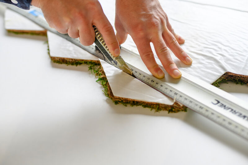 - Das Moos kann bei Berührung seine Farbe abgeben. Verwenden Sie zur Montage Handschuhe oder waschen Sie anschließend sofort Ihre Hände, um Verschmutzung anderer Gegenstände zu vermeiden.