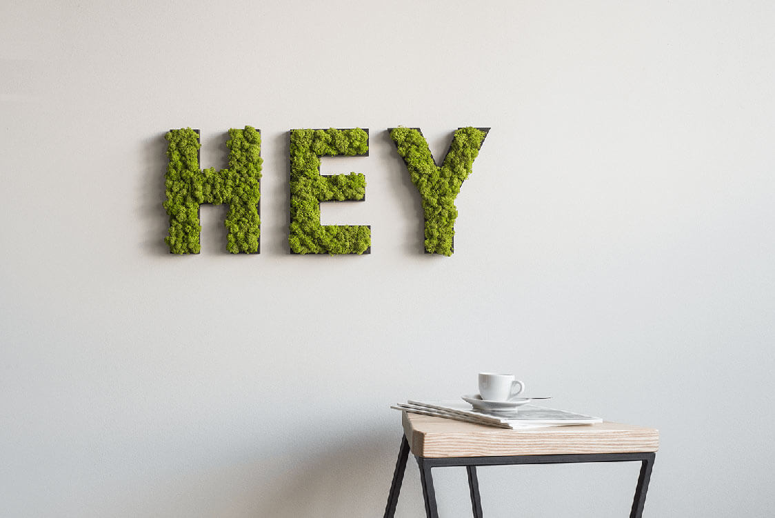 Aufhängung: durch die Aufhängung des Moos-Schildes mit Klebepunkten ist die Anbringung unkompliziert und auf jedem Untergrund schnell erledigt.
