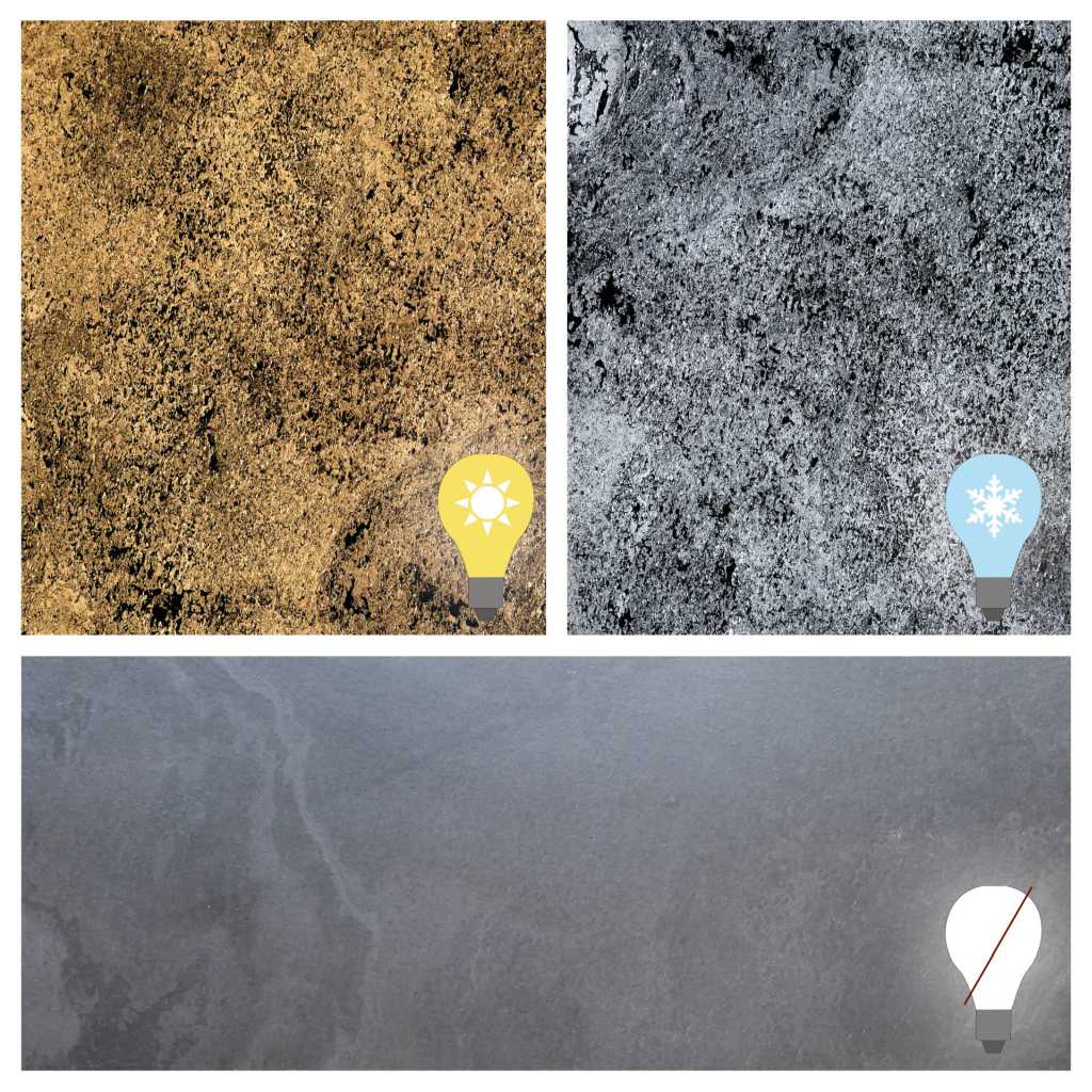 Negro Luma ist das absolute Designelement, die lichtdurchlässigen Steine verwandelnden jeden Raum in ein einzigartiges Erlebnis der Sinne. Negro Luma hat dieselben Eigenschaften wie das Classic Material, bis auf die Lichtdurchlässigkeit. Wird das Leuchtmittel hinter dem Negro Luma ausgeschaltet, wirkt es wie gewöhnlicher Schiefer, wird die Lichtquelle eingeschaltet entstehen einzigartige Musterungen.